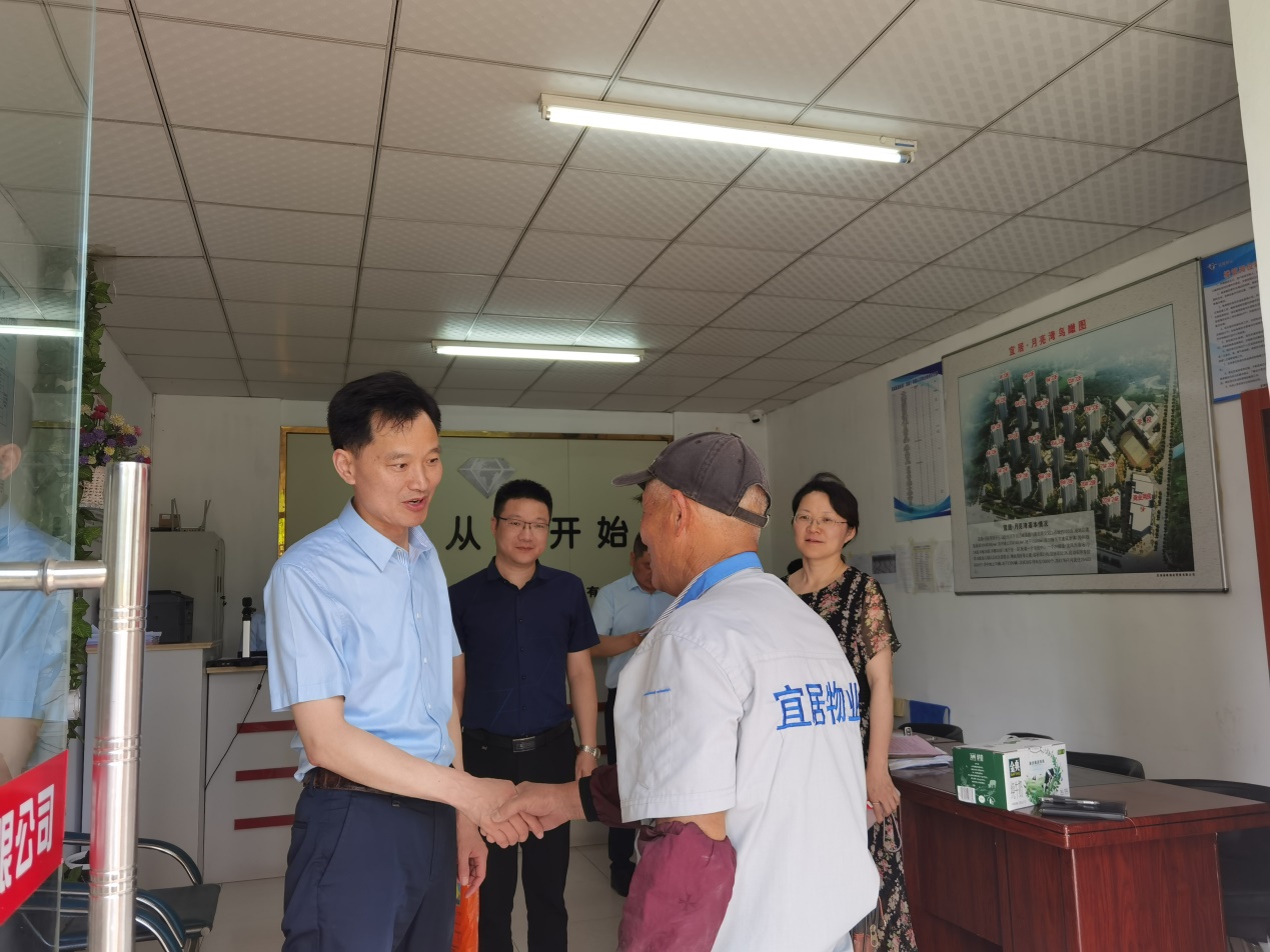 在慰问67岁仍坚守在岗位一线的月亮湾项目维修工人章荣彩同志时,,,公司党委书记、董事长沈世跃与他亲热攀谈,,,详细询问他的生涯事情状态,,,对他辛勤起劲的支付体现了充分肯定。。。沈世跃体现,,,正是有了像他这样的老党员,,,在通俗的岗位上默默无闻、无私贡献,,,才有了协调稳固的公租房小区情形。。。希望他继续施展履历富厚、群众信任的优势,,,施展老党员“传帮带”作用,,,为提升公租房小区物业效劳质量和水平添砖加瓦。。。同时,,,建党百年之际,,,沈世跃同志向章荣彩老党员转达了市国资委党委的节日慰问。。。