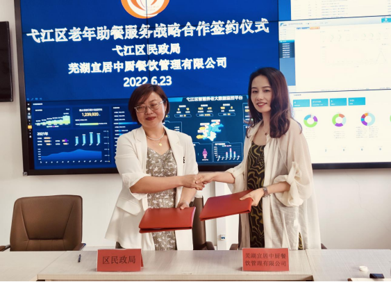 6月23日下昼,,,,,,芜湖佰富彩中厨餐饮治理有限公司与弋江区民政局正式签署了晚年助餐效劳战略相助协议,,,,,,市民政局副局长王峰、弋江区民政局局长孙亚敏、弋江区民政局副局长曹存明、佰富彩博览公司总司理王次武、佰富彩中厨公司总司理邢维丹出席了签约仪式。。。。