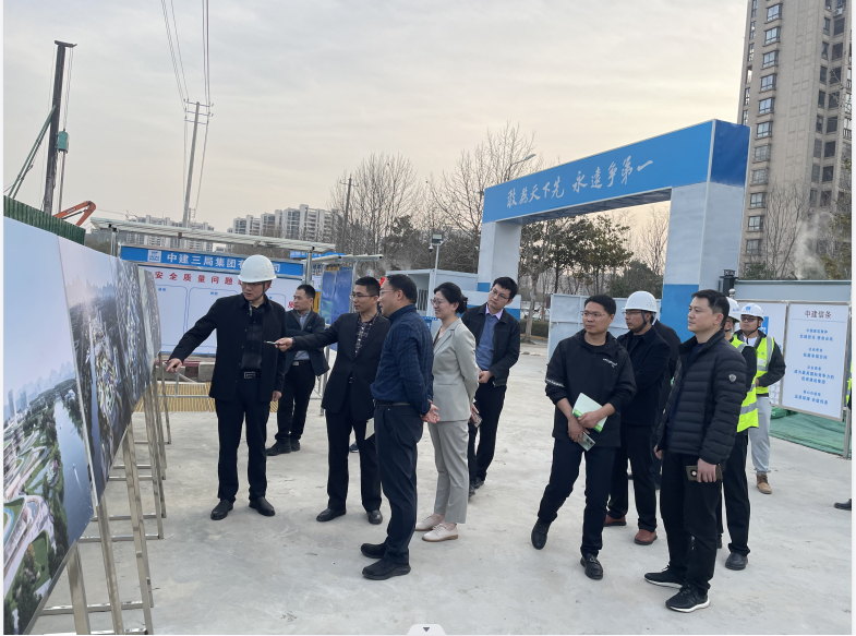 调研组一行深入施工现场,,,实地审查工程施工情形,,,详细相识项目建设内容、规模、希望及下一步事情妄想,,,郭浩副主任对该项目建设给予高度评价。。。