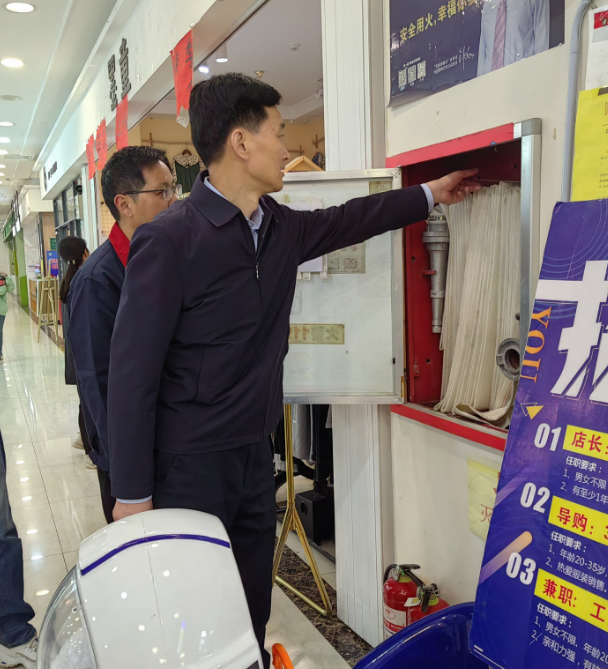 沈世跃深入香城湾沿街门店、阛阓超市、餐饮商铺等,,,,实地检查审查消防通道流通、消防水带枪头维保、灭火器配备、清静使用燃气、消防清静宣传等落真相形,,,,现场演练消防水枪出水情形。。。。。。他强调,,,,要进一步压实清静生产责任,,,,认真罗致近期火灾事故教训,,,,周全排查清静隐患,,,,要重点排查私自改变衡宇结构、液化气使用、私拉电线、堆放易燃杂物等情形,,,,针对排查出的隐患要明确整改责任部分、责任职员实时限,,,,确保切合消防清静要求;;;要进一步增强清静生产宣传,,,,明确见告衡宇现实使用人的清静生产责任,,,,提高清静生产意识,,,,确保清静生产形势平稳,,,,确保人民群众生命、工业清静。。。。。。
