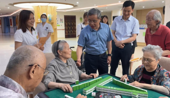 在徽州路宜邻中心项目现场,,,公司党委书记、董事长沈世跃同志向吴书记一行汇报了项目施工希望、业态妄想、招商运营、清廉工地建设等事情,,,实地考察了项目思廉亭、清廉文化墙。。。。吴书记对将清廉元素融入项目建设的做法给予充分肯定。。。。随厥后到罗兰小镇养老公寓,,,详细相识了养老公寓的入住流程、户型类型、配套效劳、老人康健治理等。。。。在走访中,,,偶遇正在休闲活动的尊长,,,并与他们亲热攀谈、询问入住体验,,,盈盈笑语充斥于室。。。。
