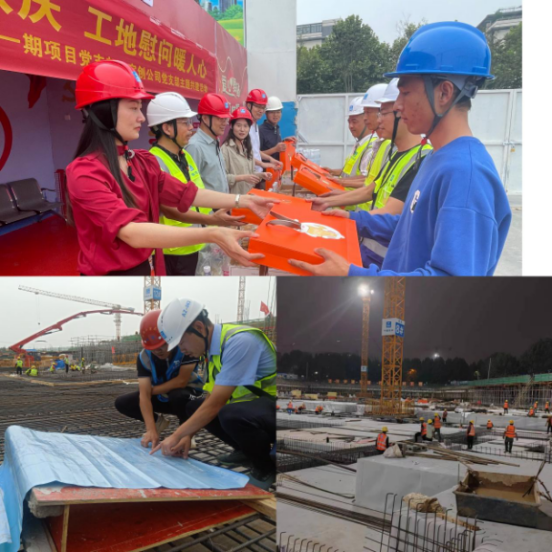 国庆中秋同欢庆,,, ,工地慰问暖人心