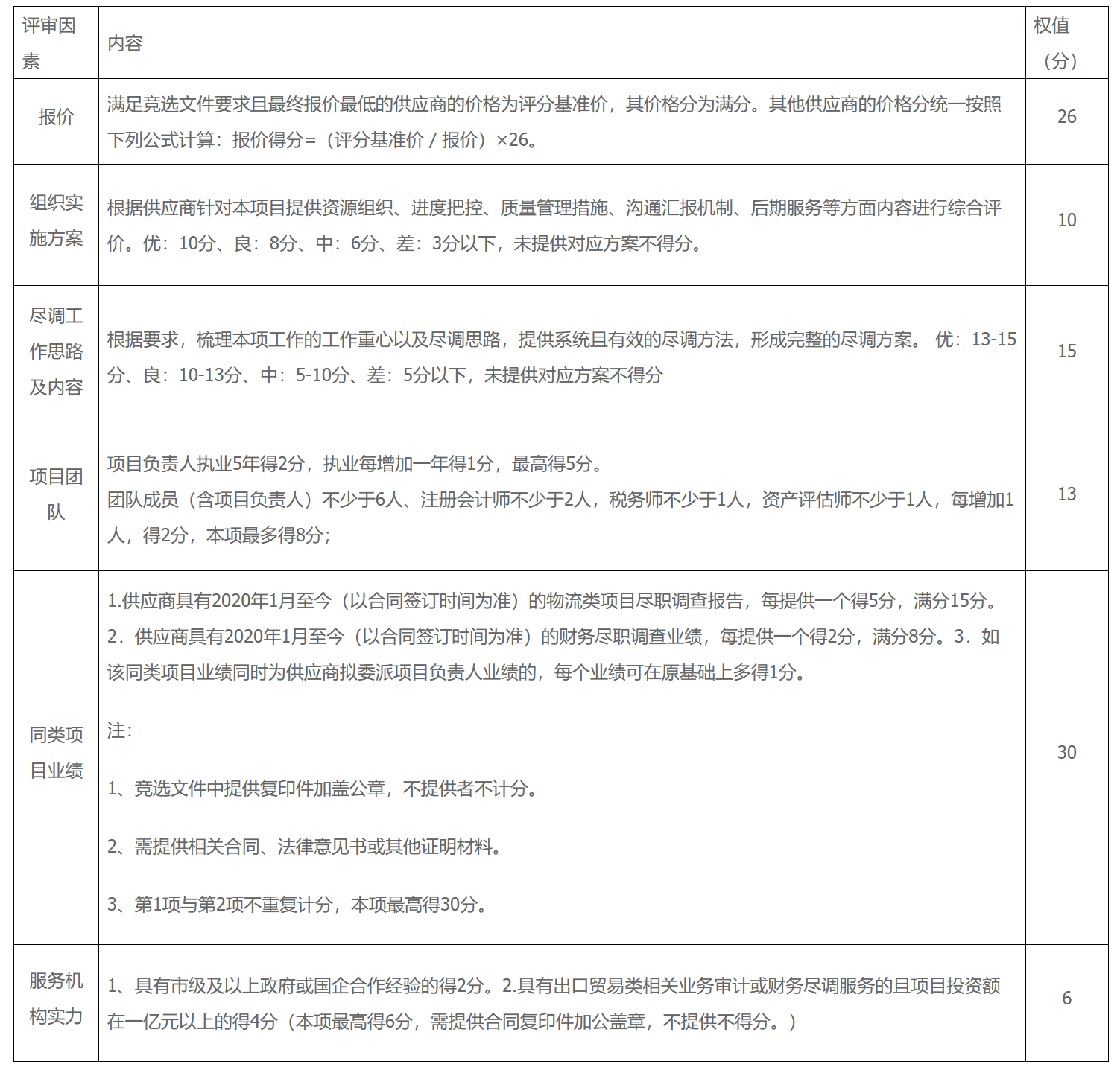 本项目接纳综合评分法(详见下表),,,,,,,得分最高者中选。。。。。。如遇总分相等,,,,,,,则报价低者中选。。。。。。若总分相等,,,,,,,报价相同,,,,,,,则接纳随机抽取方法确定中选人。。。。。。