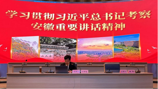 宣讲会上,,,公司党委书记、董事长沈世跃从充分熟悉习近平总书记考察安徽主要讲话的重大意义、深刻体会习近平总书记考察安徽主要讲话精神的富厚内在、切实推动习近平总书记考察安徽主要讲话精神落地生根等方面举行了深刻叙述、周全解读,,,宣讲主题鲜明、内容富厚、系统周全。。。。。